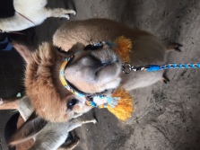 Alpaka Halfter geflochten mit Perlenband und Pompons.