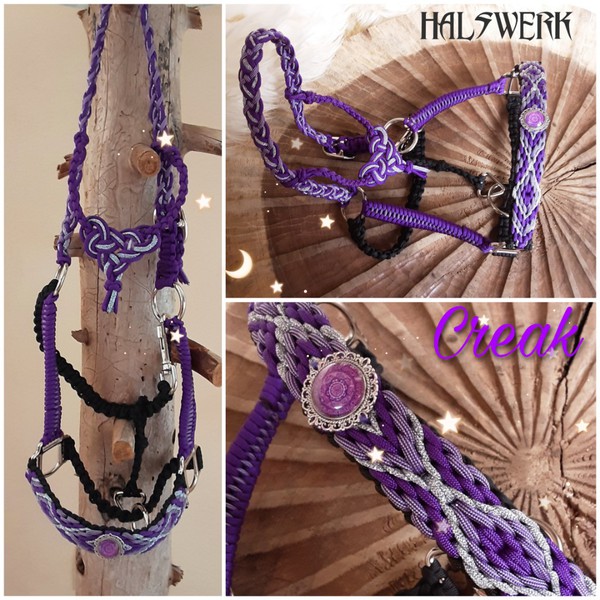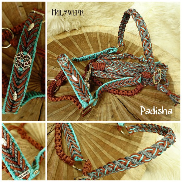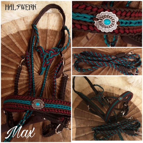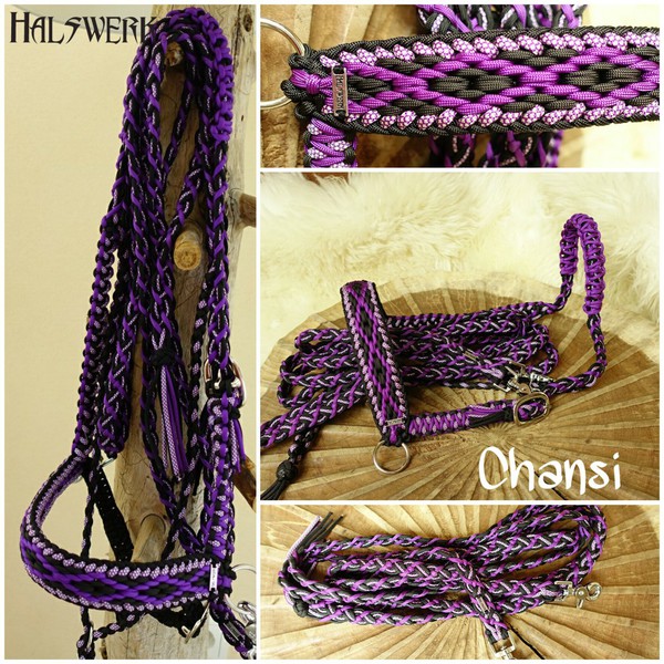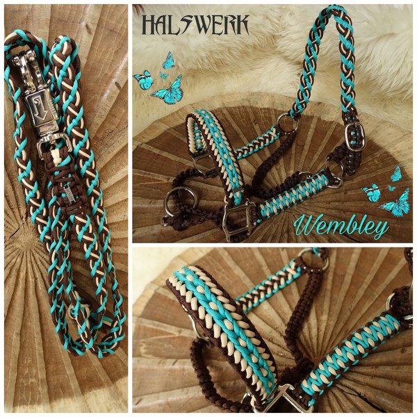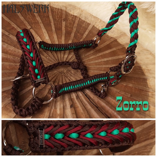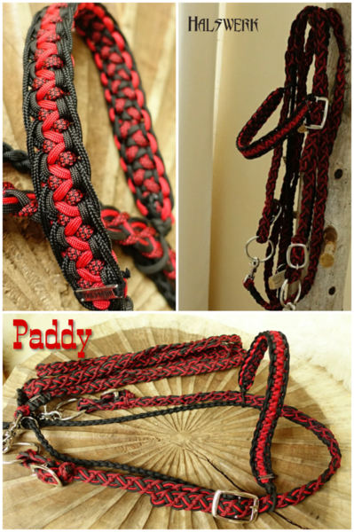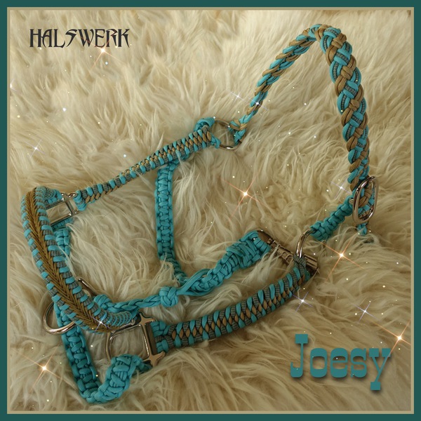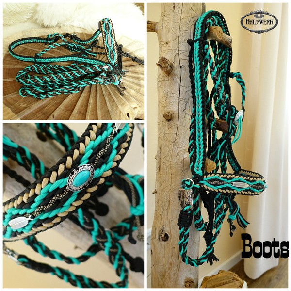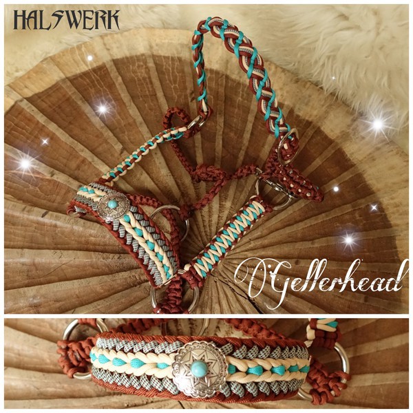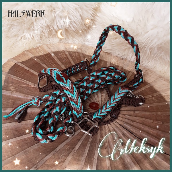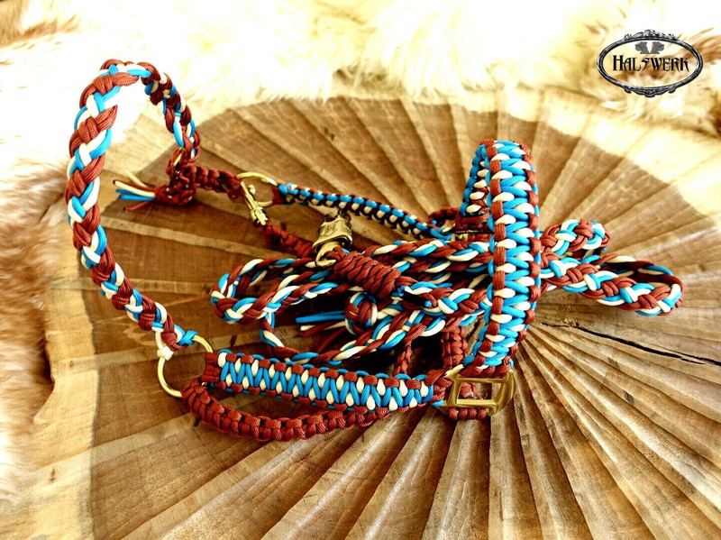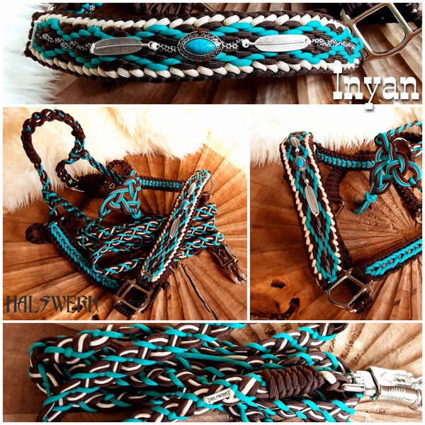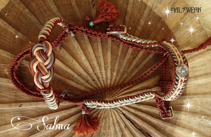 Jedes Stallhalfter/Trense kann in sämtlichen Halsbandmustern geflochten werden. Die Halftermuster können individuell gestaltet werden.