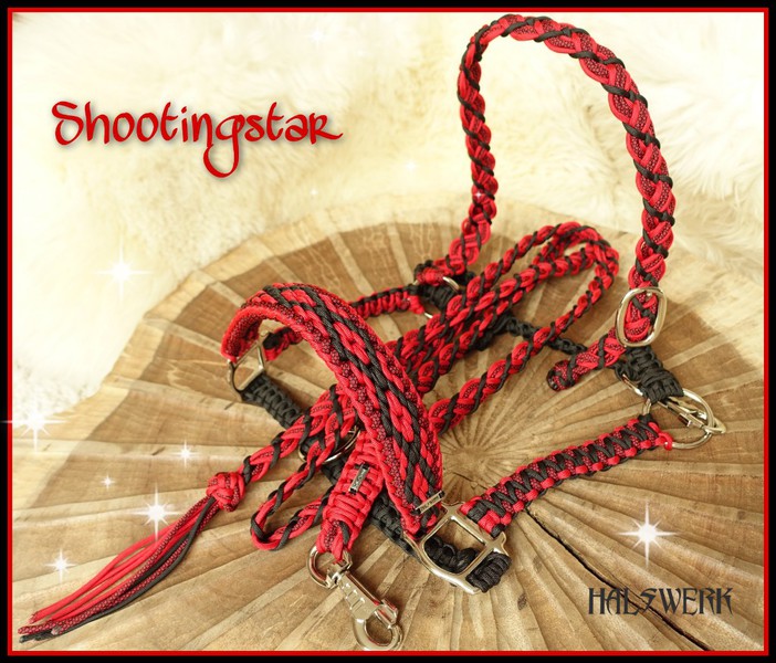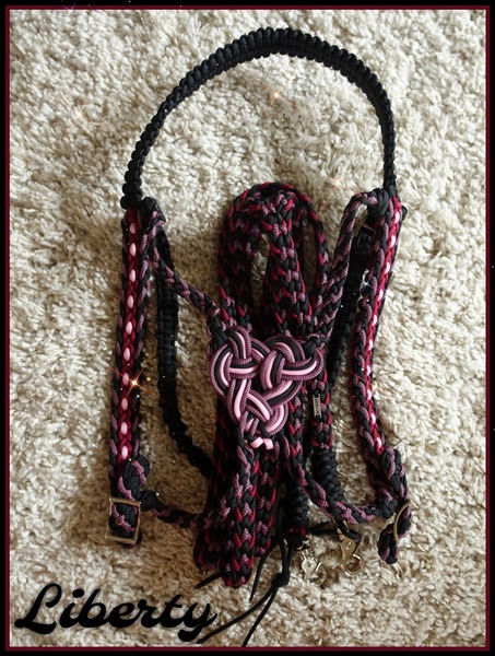 Auf dieser Seite zeige ich eine kleine Auswahl bereits gefertigter Halfter, Wanderreittrensen, Führseile, Stirnbänder und Reitbegleitleinen aus Fallschirmseil.