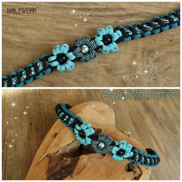 Selbstverständlich kann ich Ihnen auch Stirnriemen oder Trensen in sämtlichen Halsbandmustern flechten.