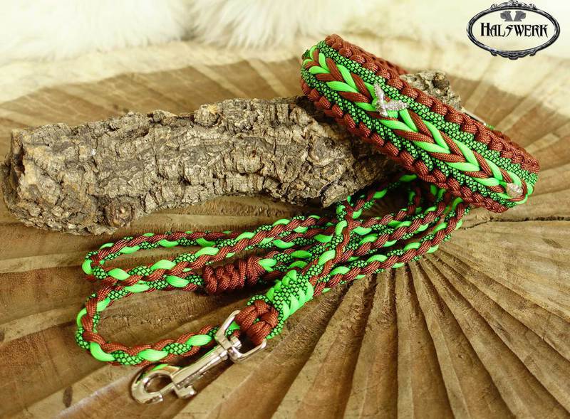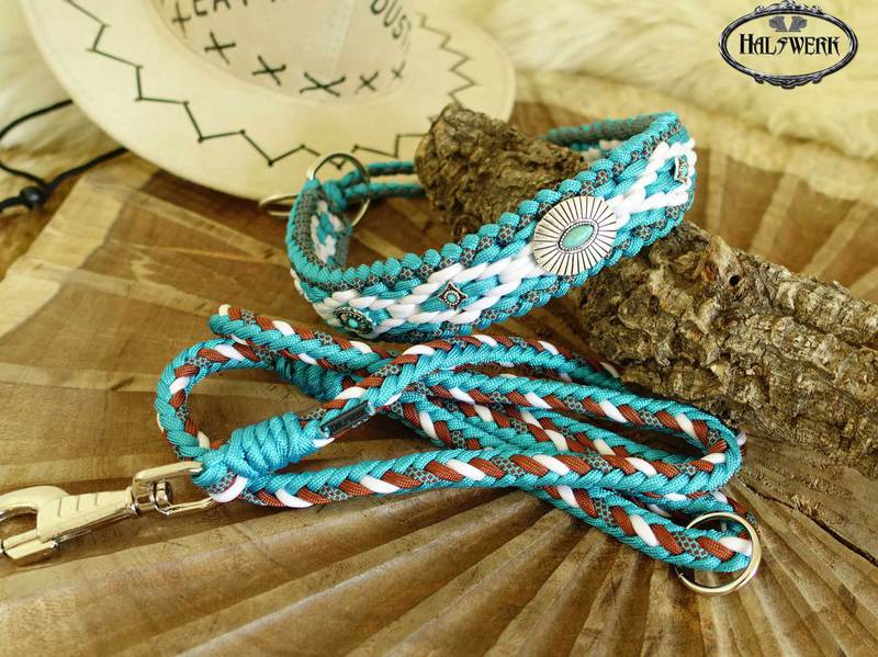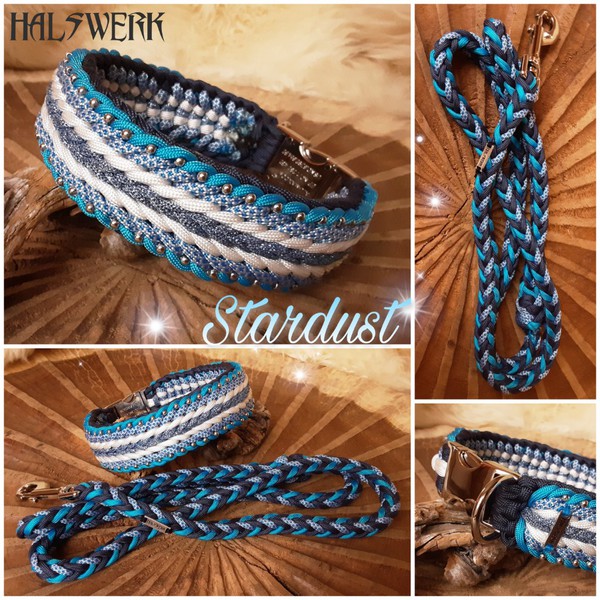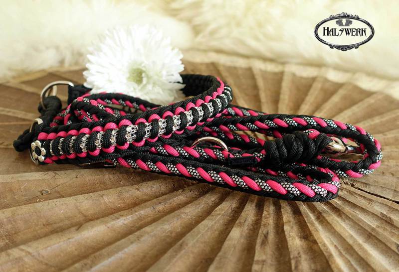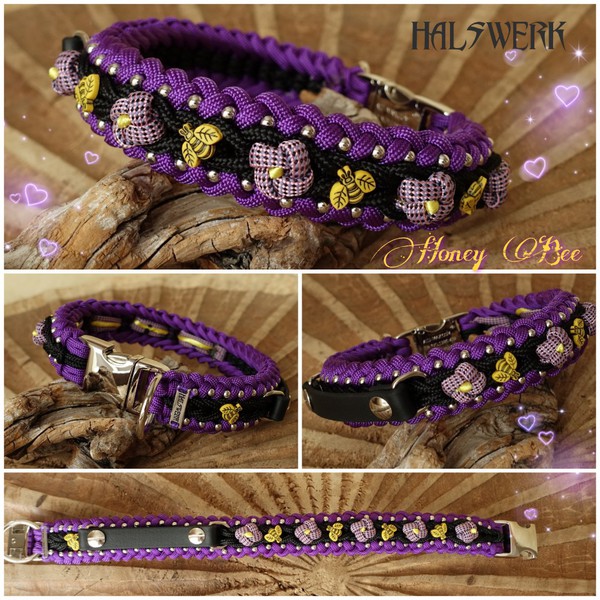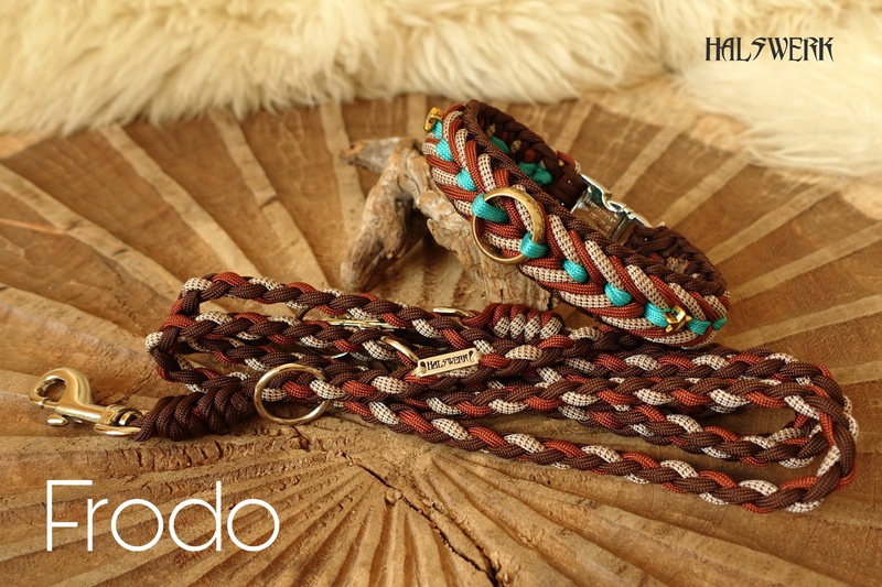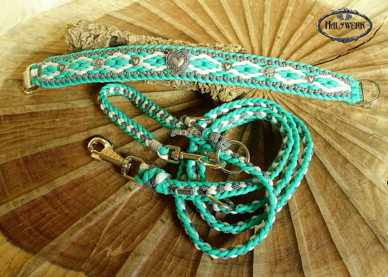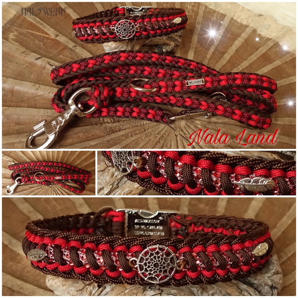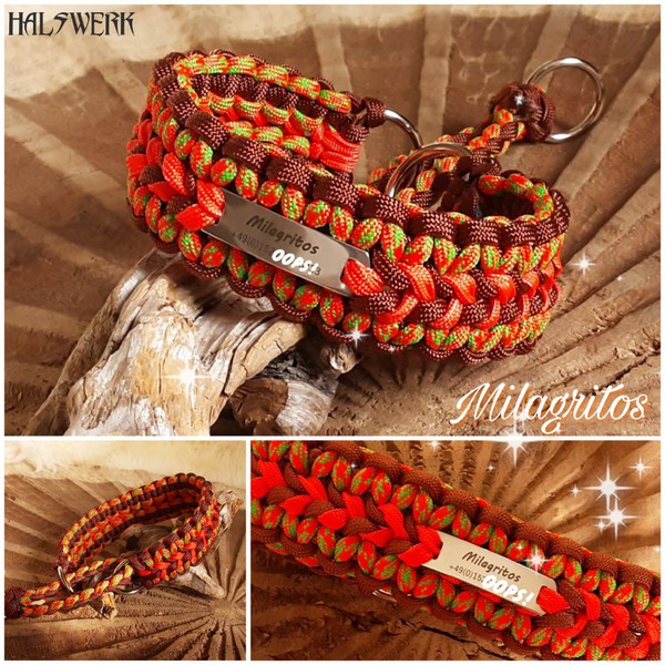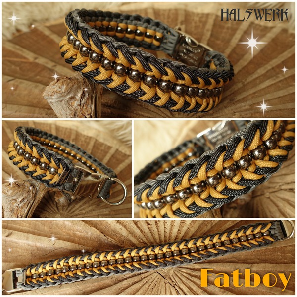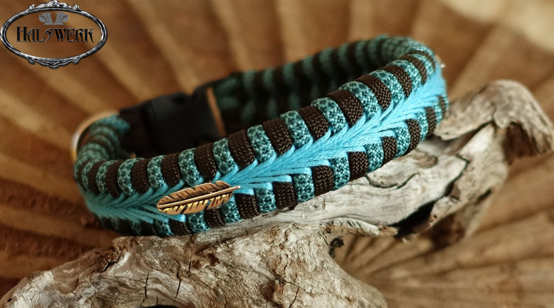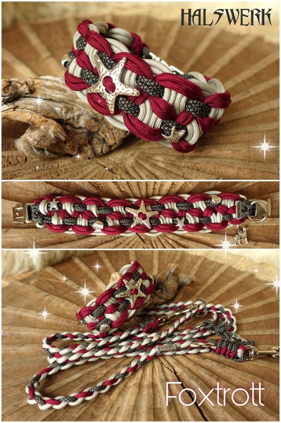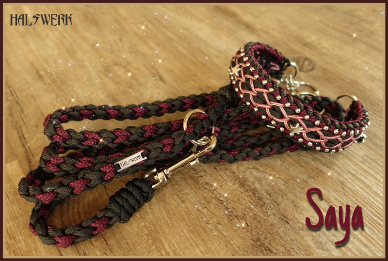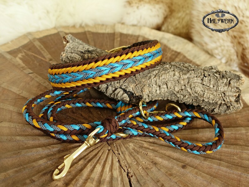 Schmuckhalsband für leinenführige Hunde. Kombination aus Fallschirmseil und Borten mit diversen Charms.