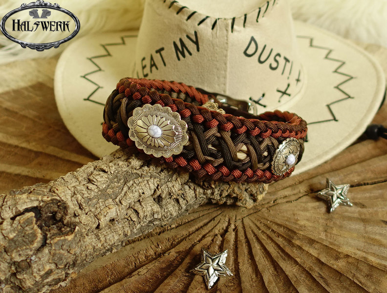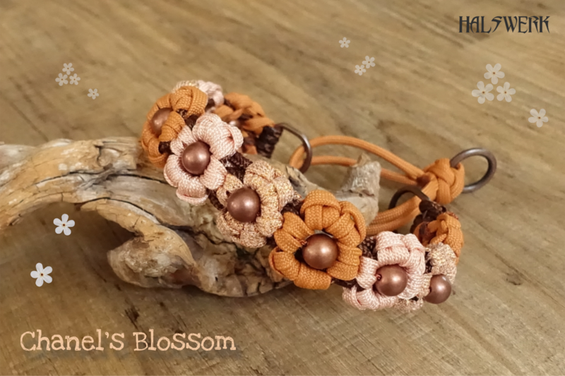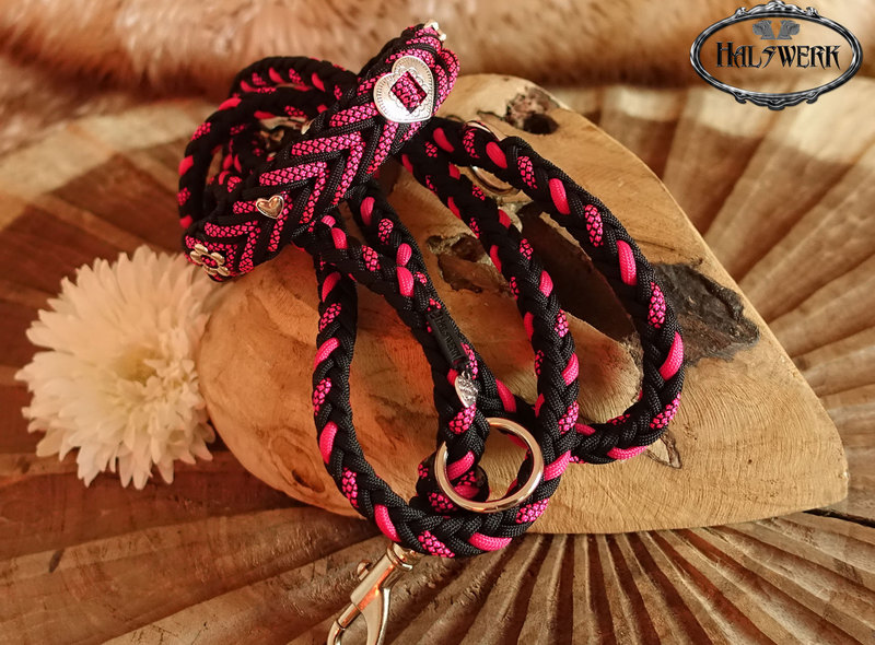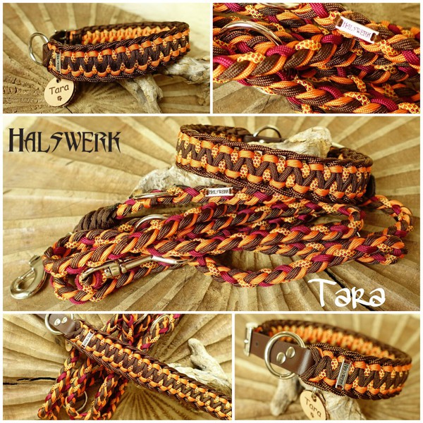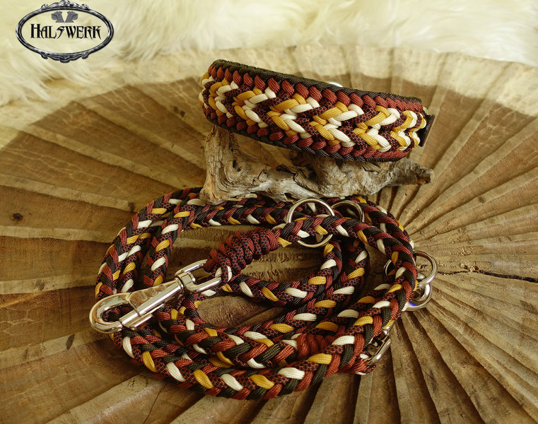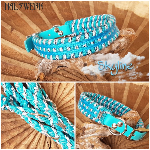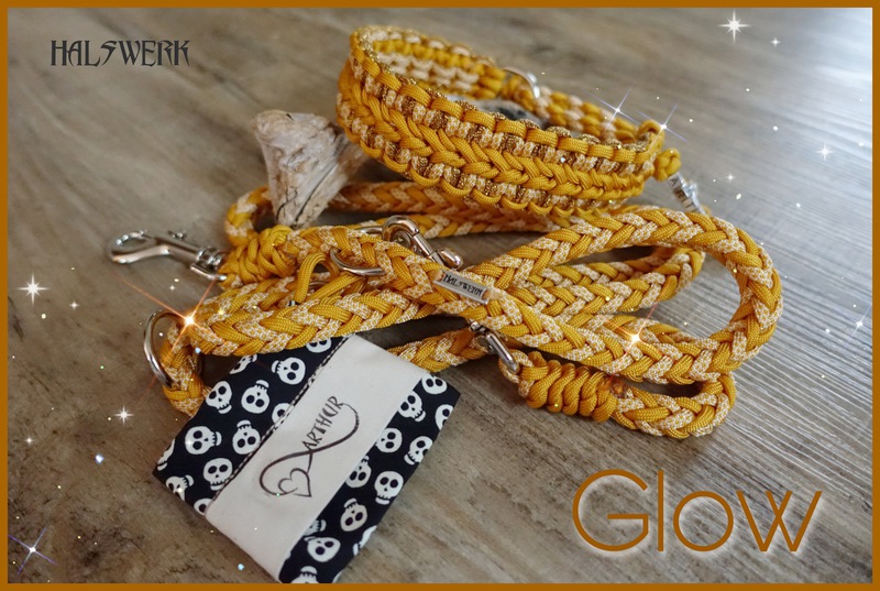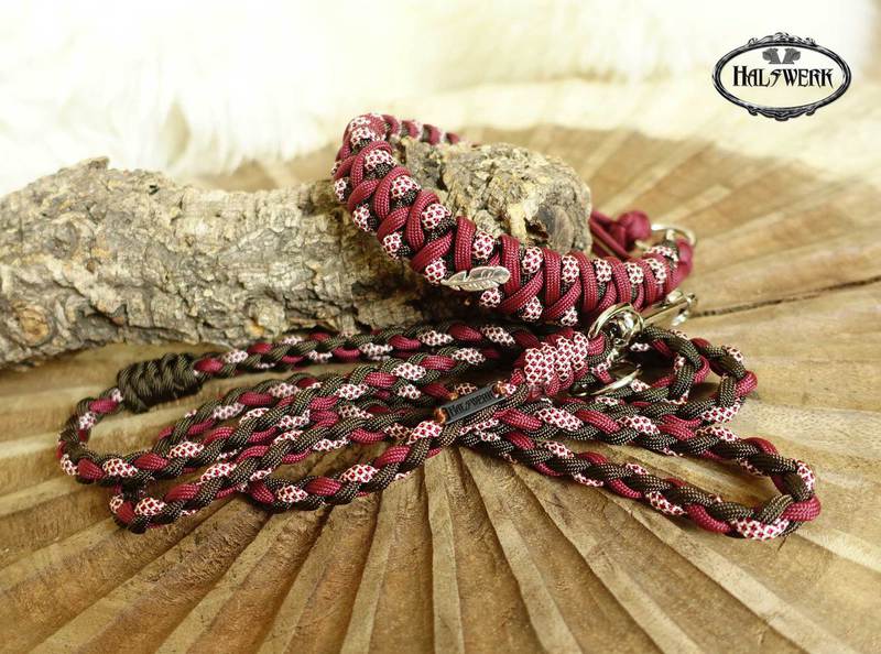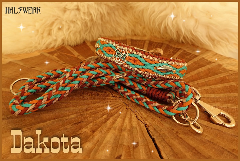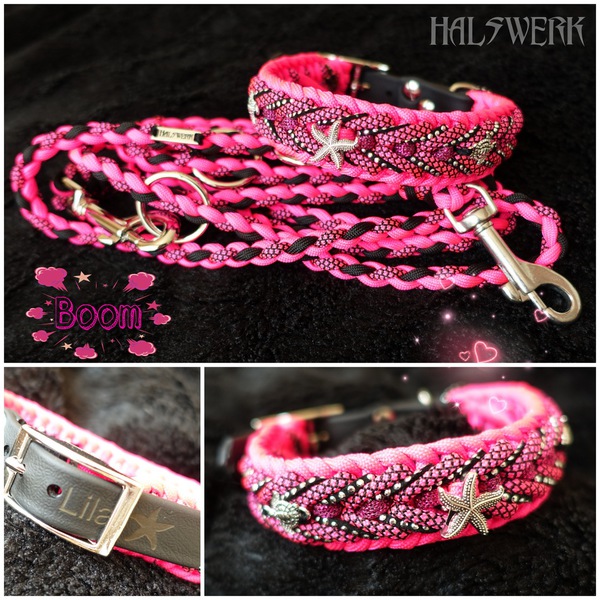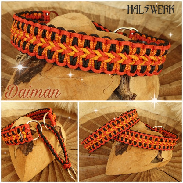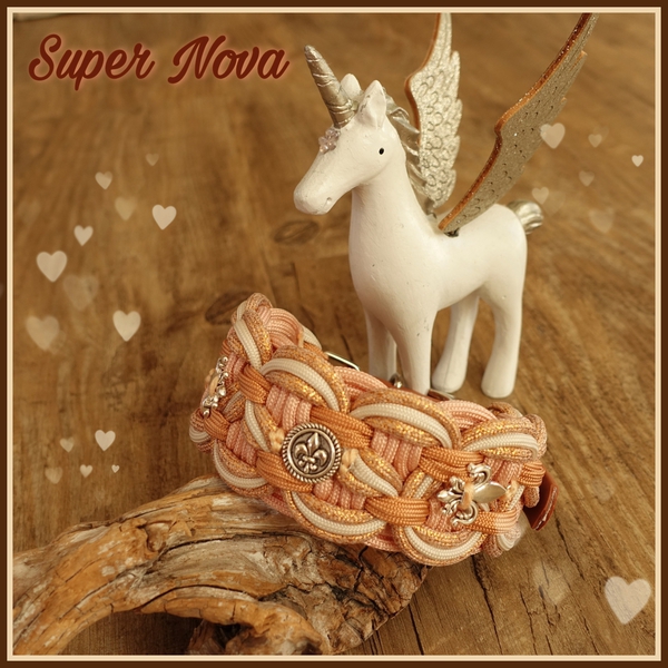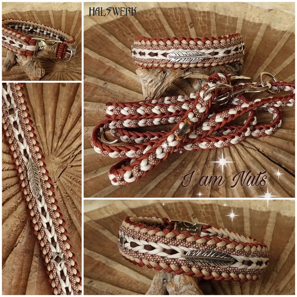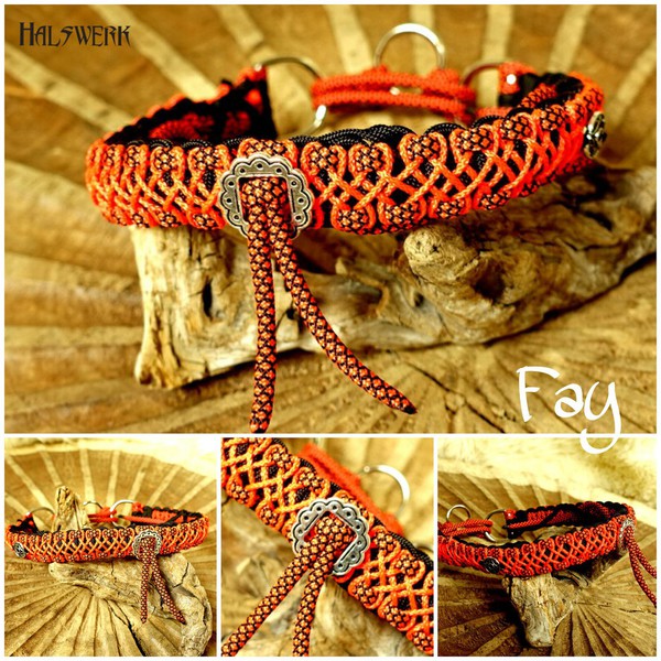 Schmuckhalsband für leinenführige Hunde. Kombination aus Fallschirmseil und Borten mit diversen Charms.