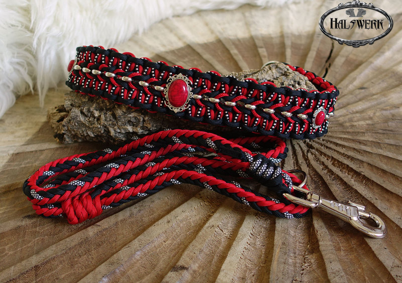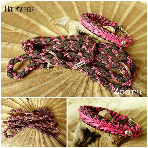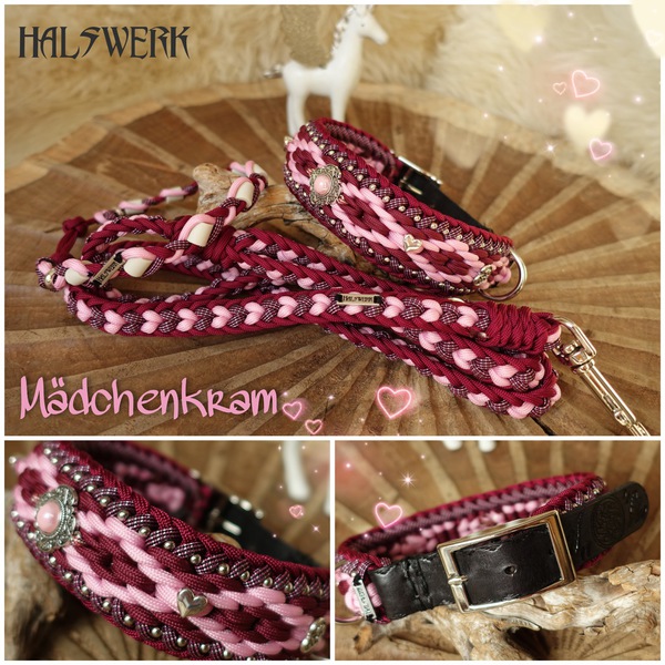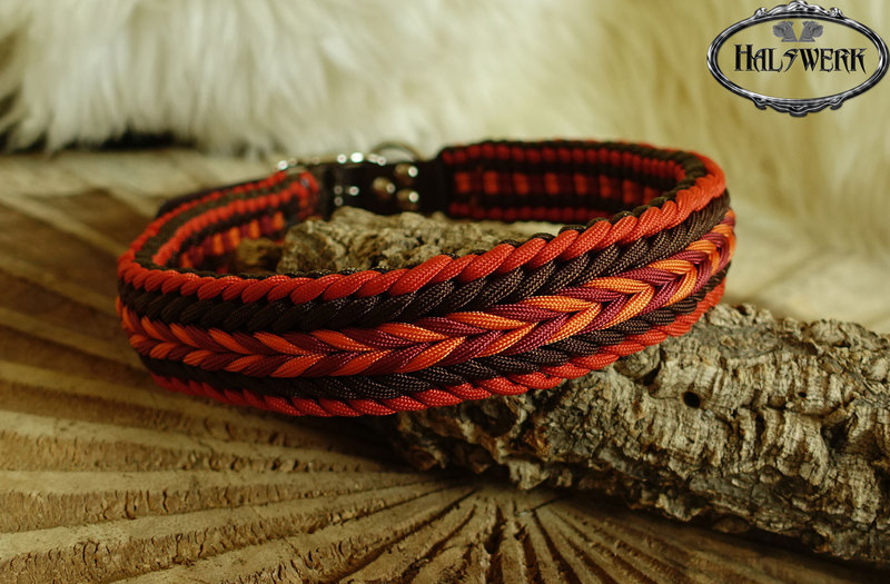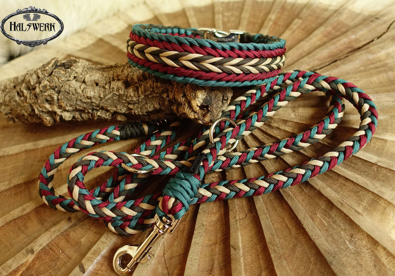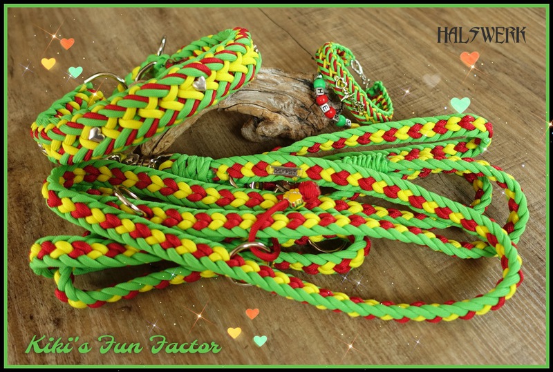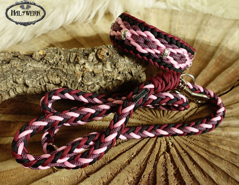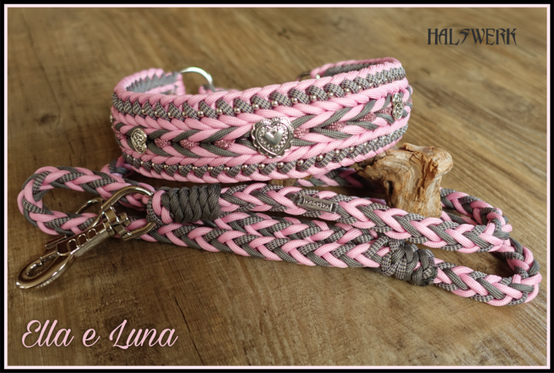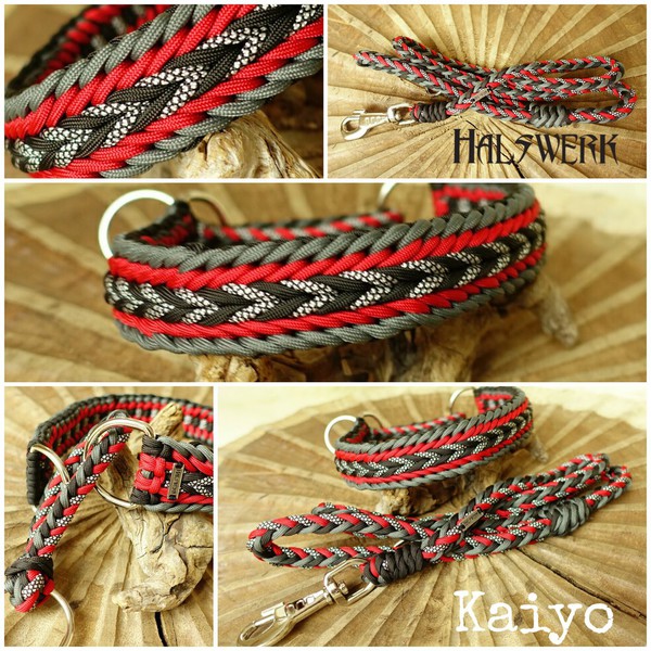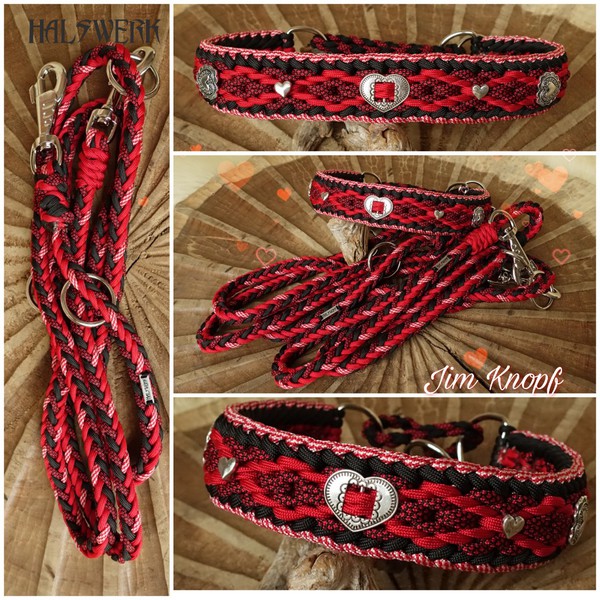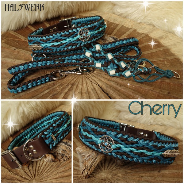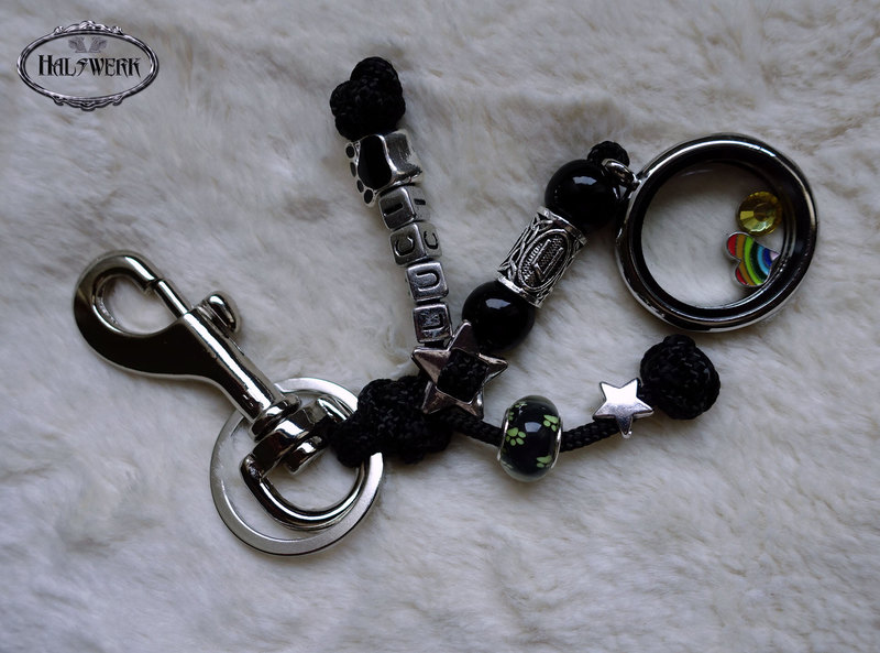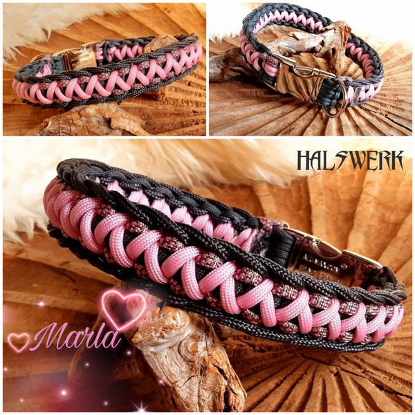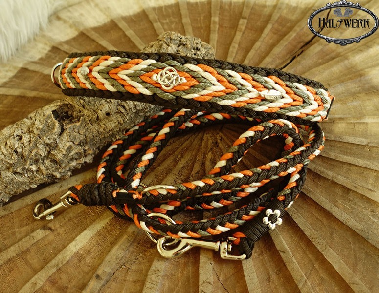 Schmuckhalsband für leinenführige Hunde. Kombination aus Fallschirmseil und Borten mit diversen Charms.