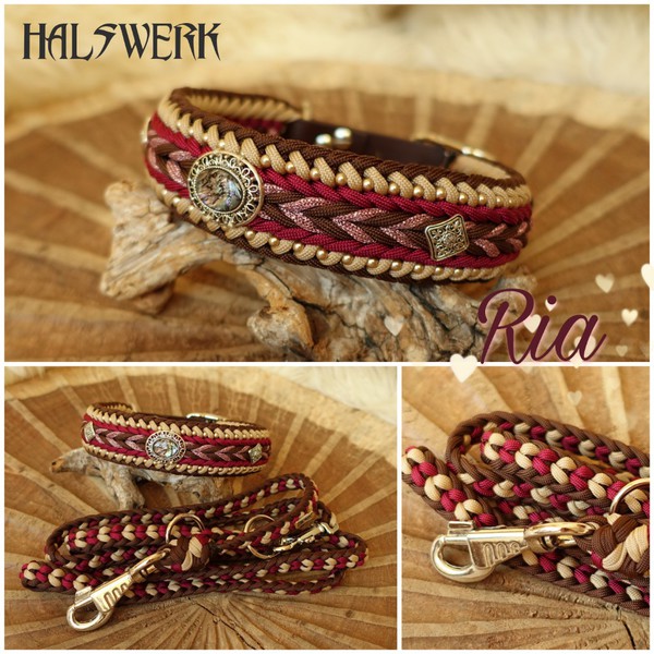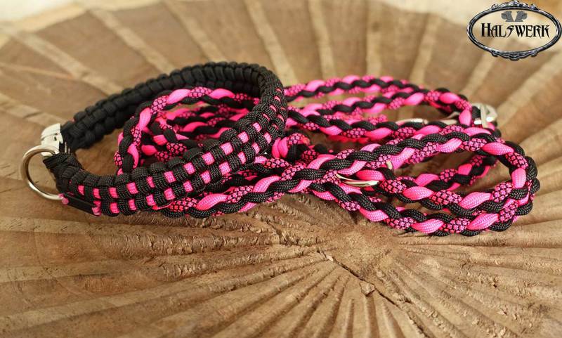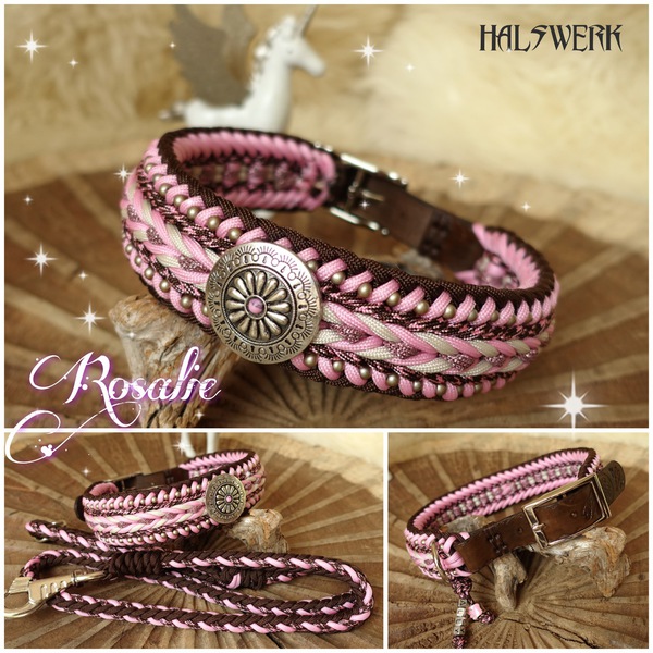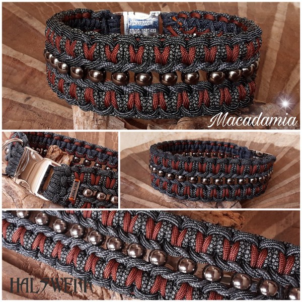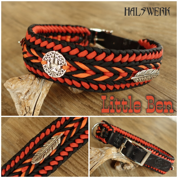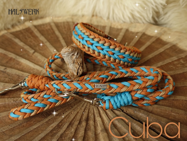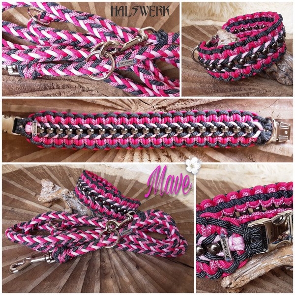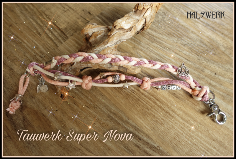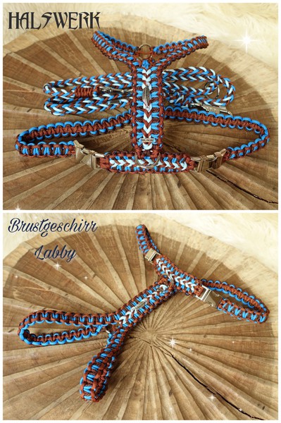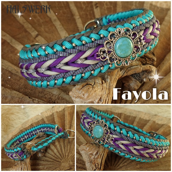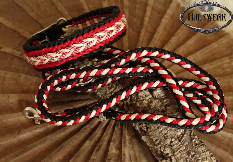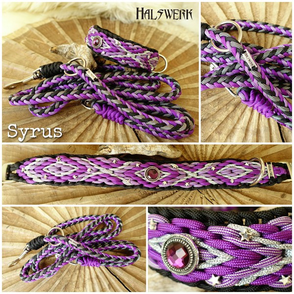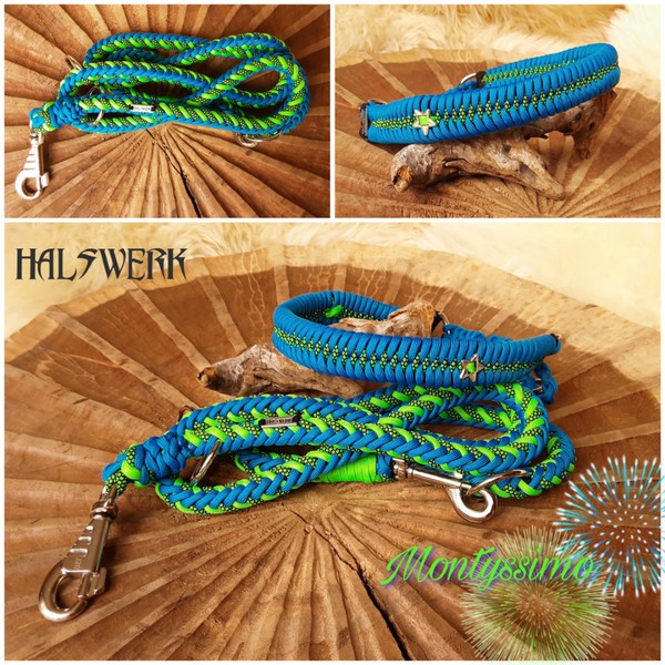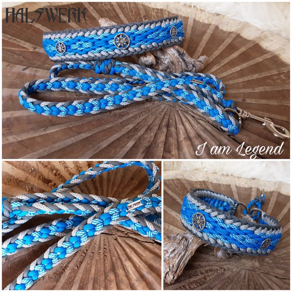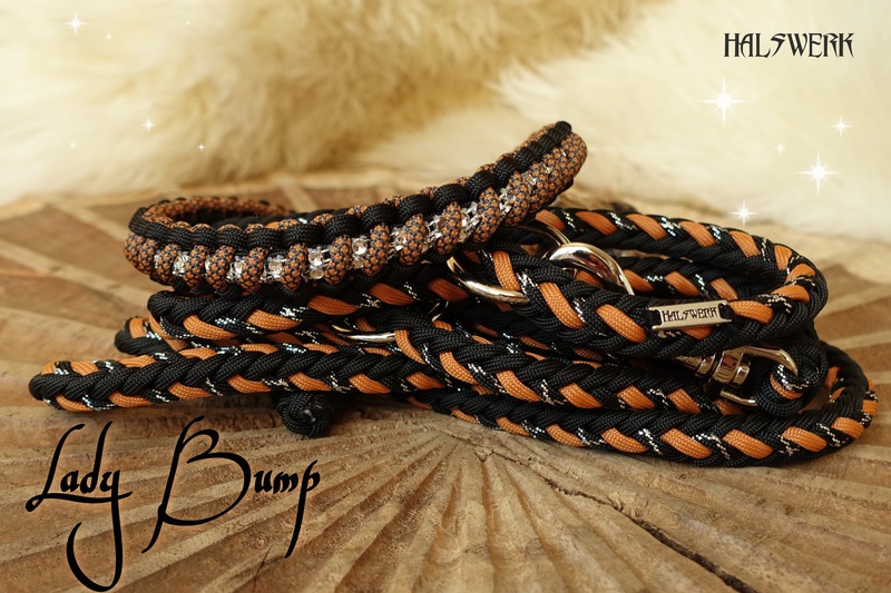 Schmuckhalsband für leinenführige Hunde. Kombination aus Fallschirmseil und Borten mit diversen Charms.