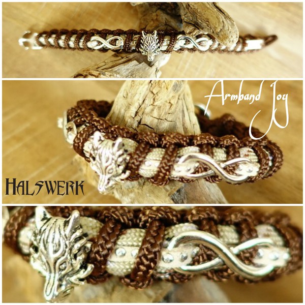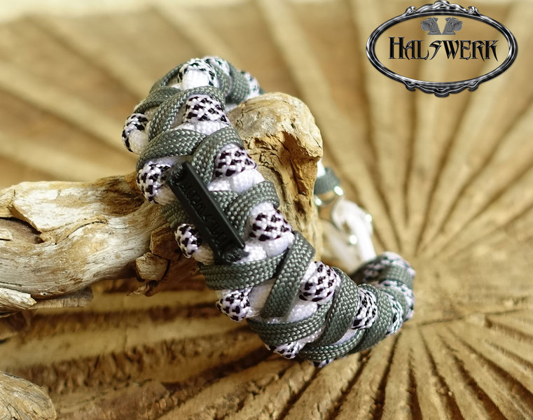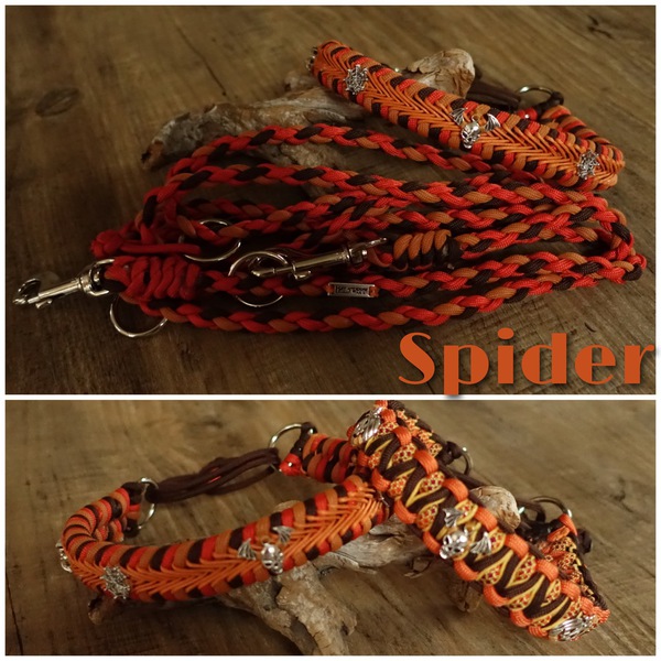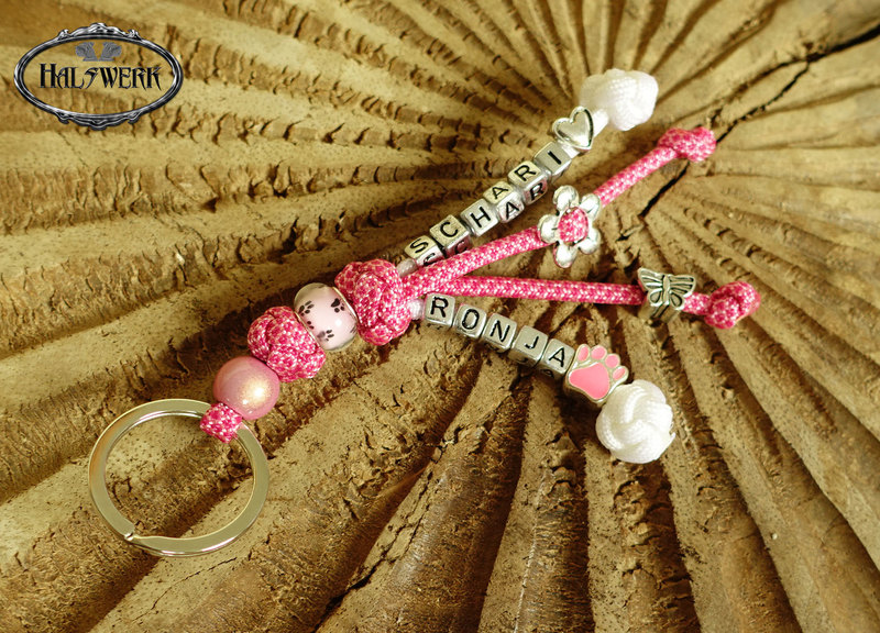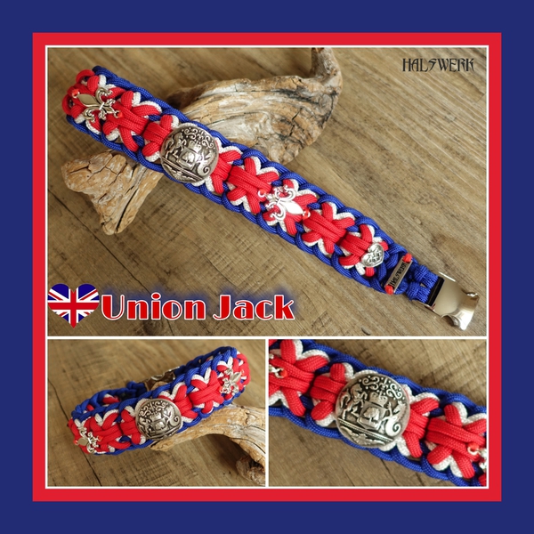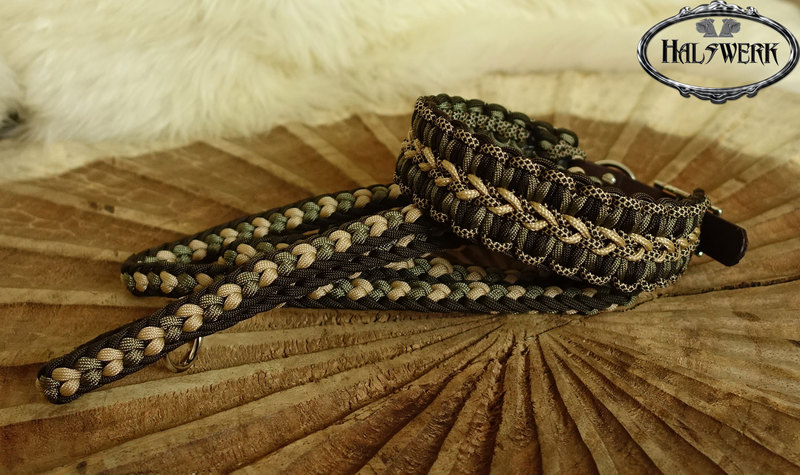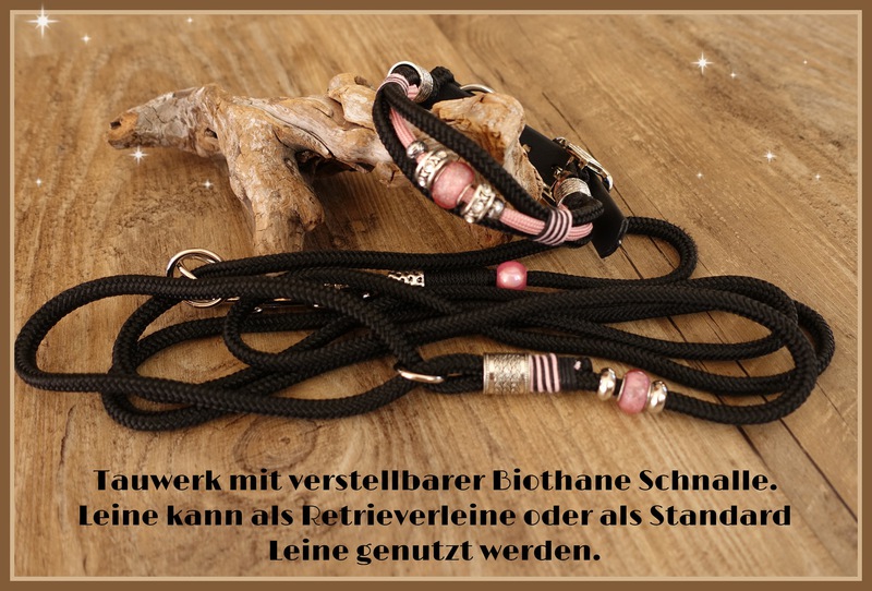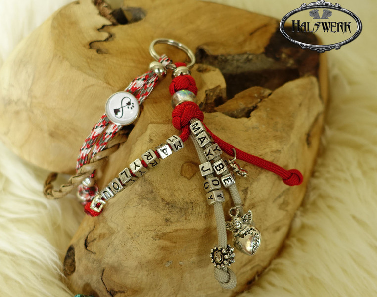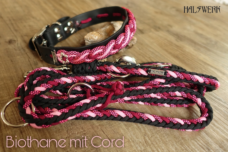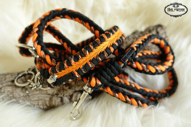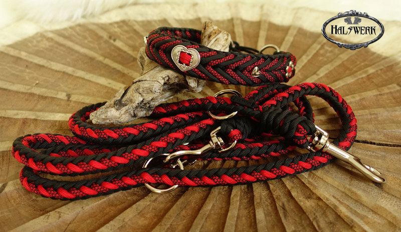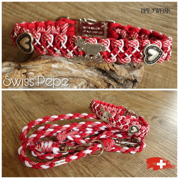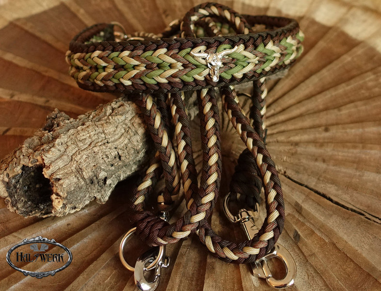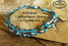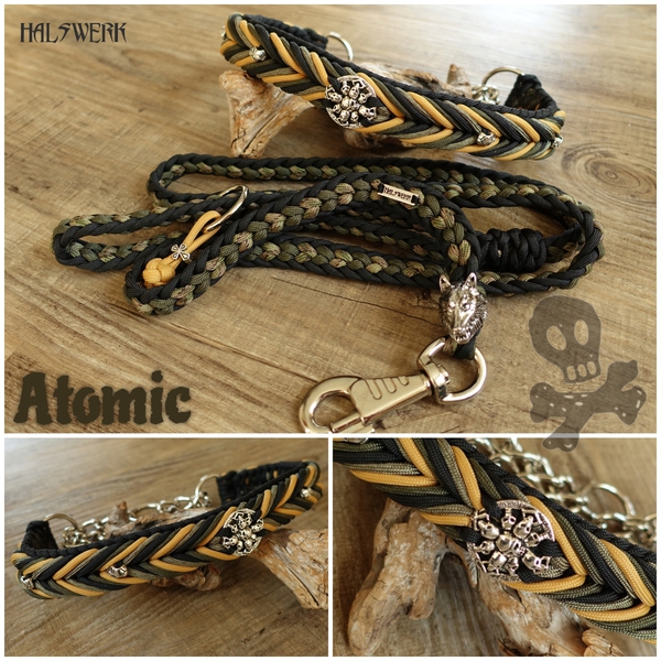 Schmuckhalsband für leinenführige Hunde. Kombination aus Fallschirmseil und Borten mit diversen Charms.