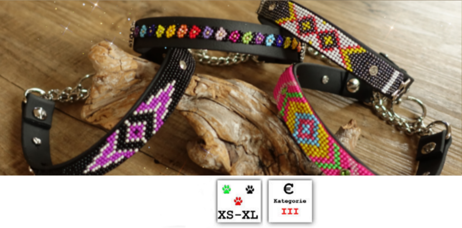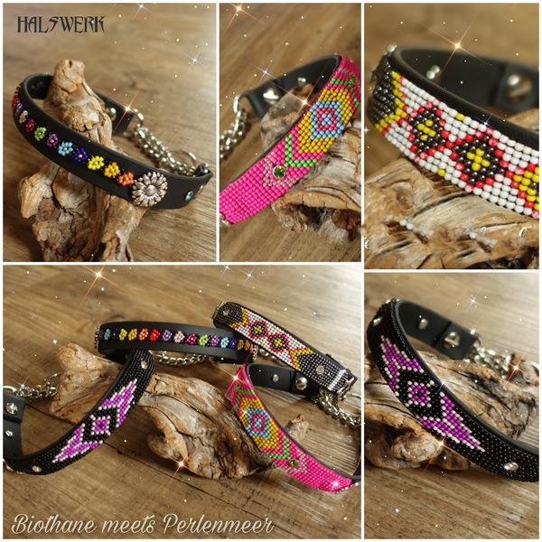 Für die Halsband Galerien bitte nach unten scrollen. Muster 1-21 ist fortaufend nummeriert, dann Tauhalsbänder und weiter unten individuelle Halsbänder.